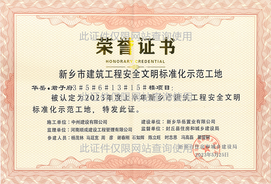 新鄉(xiāng)市建筑工程安全文明標(biāo)準(zhǔn)化示范工地
